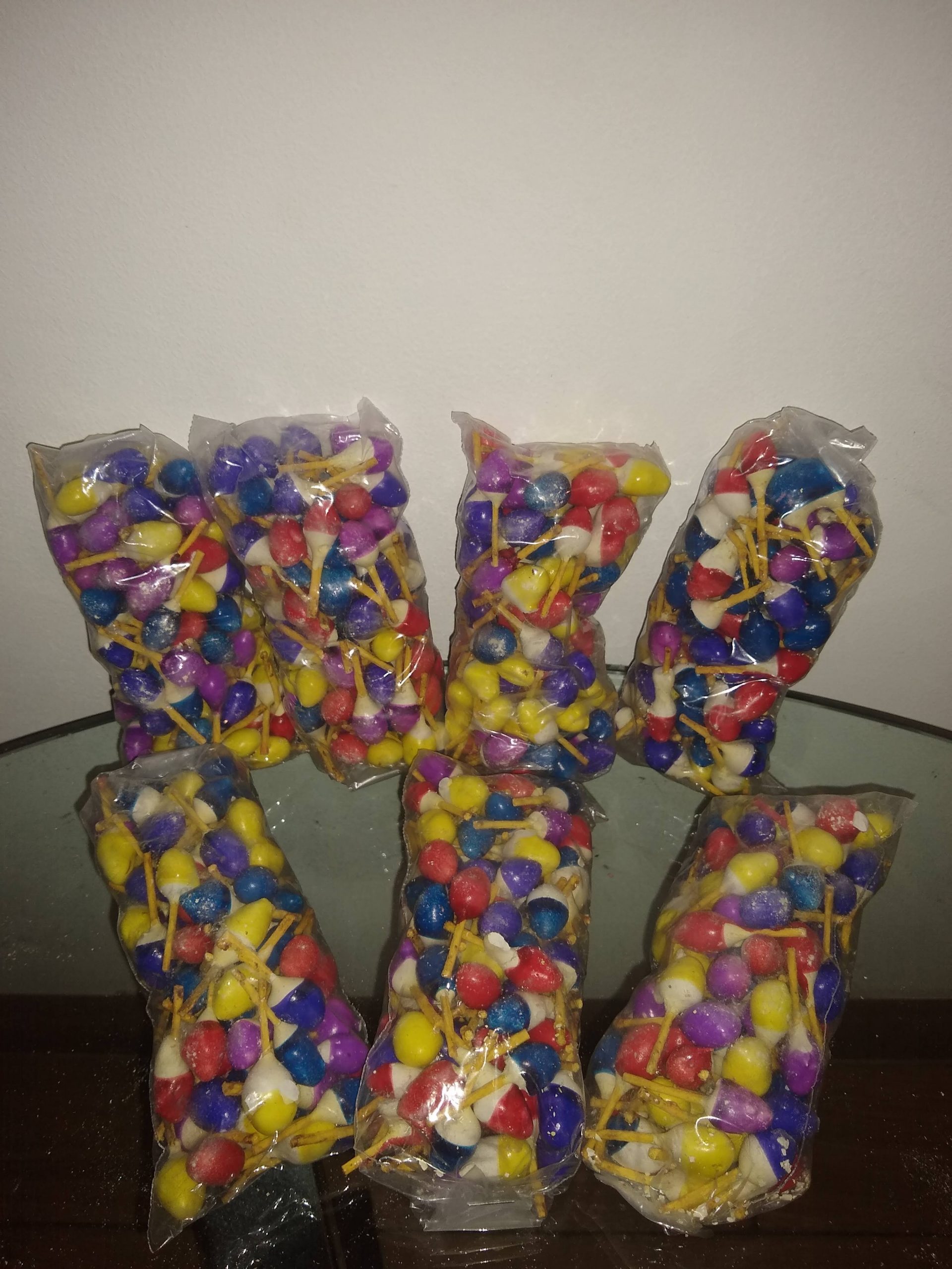 Chiltepitos, c/bolsita tiene pequeños trompos de pólvora que dan vuelta sobre sí mismos mientras emiten luces de colores.